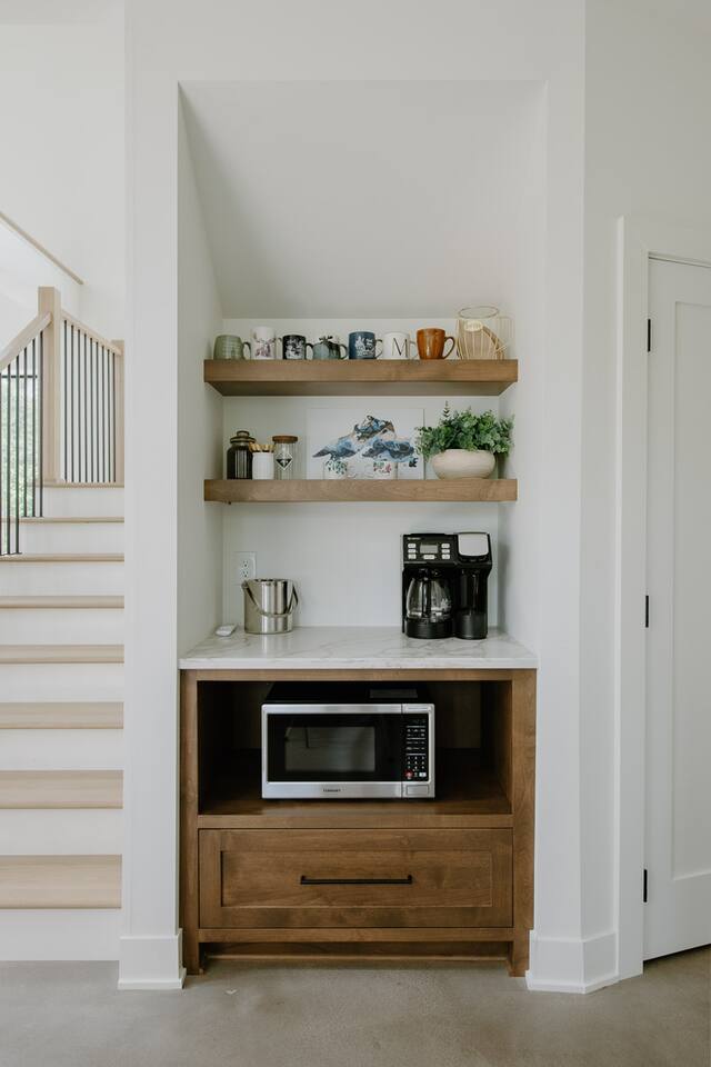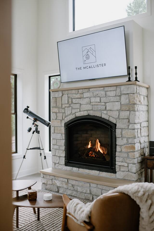 The McAllister was home to us for a fun-filled birthday weekend. The home's large windows and stunning interior is captivating the moment you step in. We enjoyed spending time in the sauna, more times that we can count! The bonfire had plenty of firewood that Jessie was generous enough to provide, and you get a great viewing spot for star gazing. Don't skip out on using the telescope! There were extra cozy blankets and plenty of pillows for cozying up around the living areas for movies and playing video games that we brought up. The den was sweet for getting cozy and reading. The kitchen is well stocked with serving bowls and plates, but if you plan on cooking at the McAllister, consider bringing seasonings from home or visiting the nearby markets for the little things.